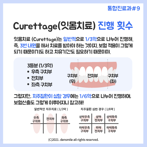 : 국소마취를 하고, 치주낭 내의 치조골 부위까지 curet을 도달시켜서 치은연하 치석, 치주낭 측벽의 염증성 연조직, 접합상피, 치조골부위의 염증성 결합조직까지 제거하는 것으로, 치근면 처치에 중점을 두는 술식.