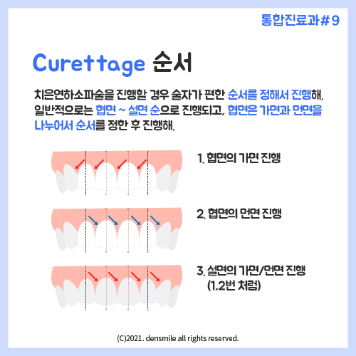 5) gracey curet #11/12, #13/14이용하여 curettage 진행 → 순서는 협면~설면 순으로